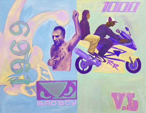 cb500 na escola, acrílica sobre tela, 45 x 35 cm, 2023
